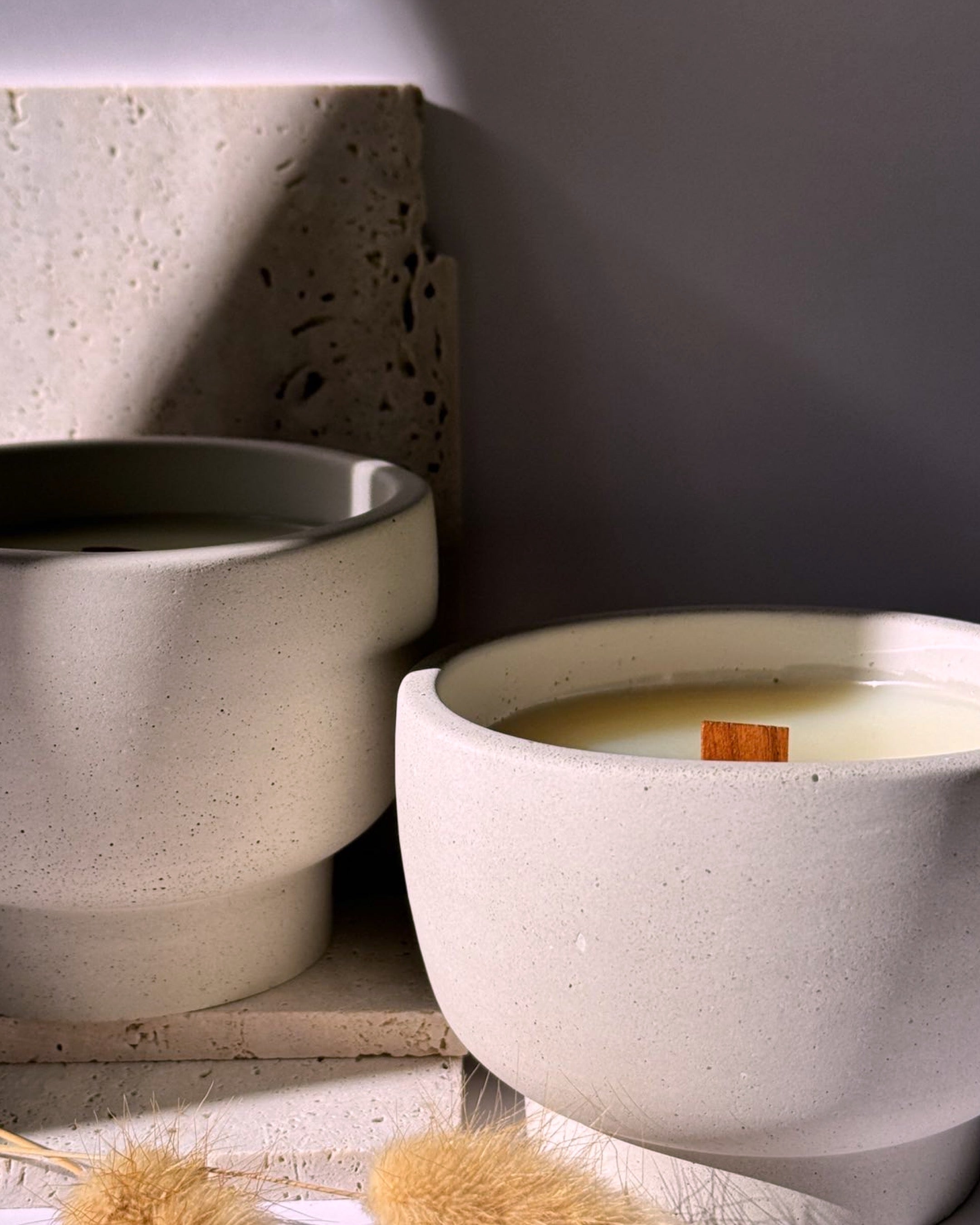 Each concrete decor is handcrafted, sanded and sealed with an eco-friendly sealant or wax that is safe for you and your home. All of our candles are hand poured in Sherman Oaks, California using only high quality, non-toxic candle wax and premium fragrance oils.